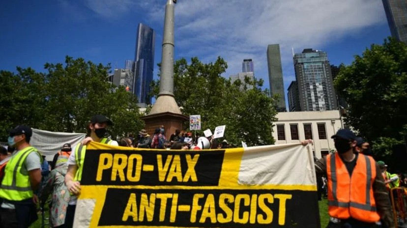 Στη Μελβούρνη περίπου 2.000 άνθρωποι διαδήλωσαν παράλληλα για να εκφράσουν την αντίθεσή τους στην συγκέντρωση των αντιεμβολιαστών, σε μια από τις πρώτες αντιδιαδηλώσεις που γίνονται στην Αυστραλία από τότε που ξέσπασε η πανδημία της COVID-19.