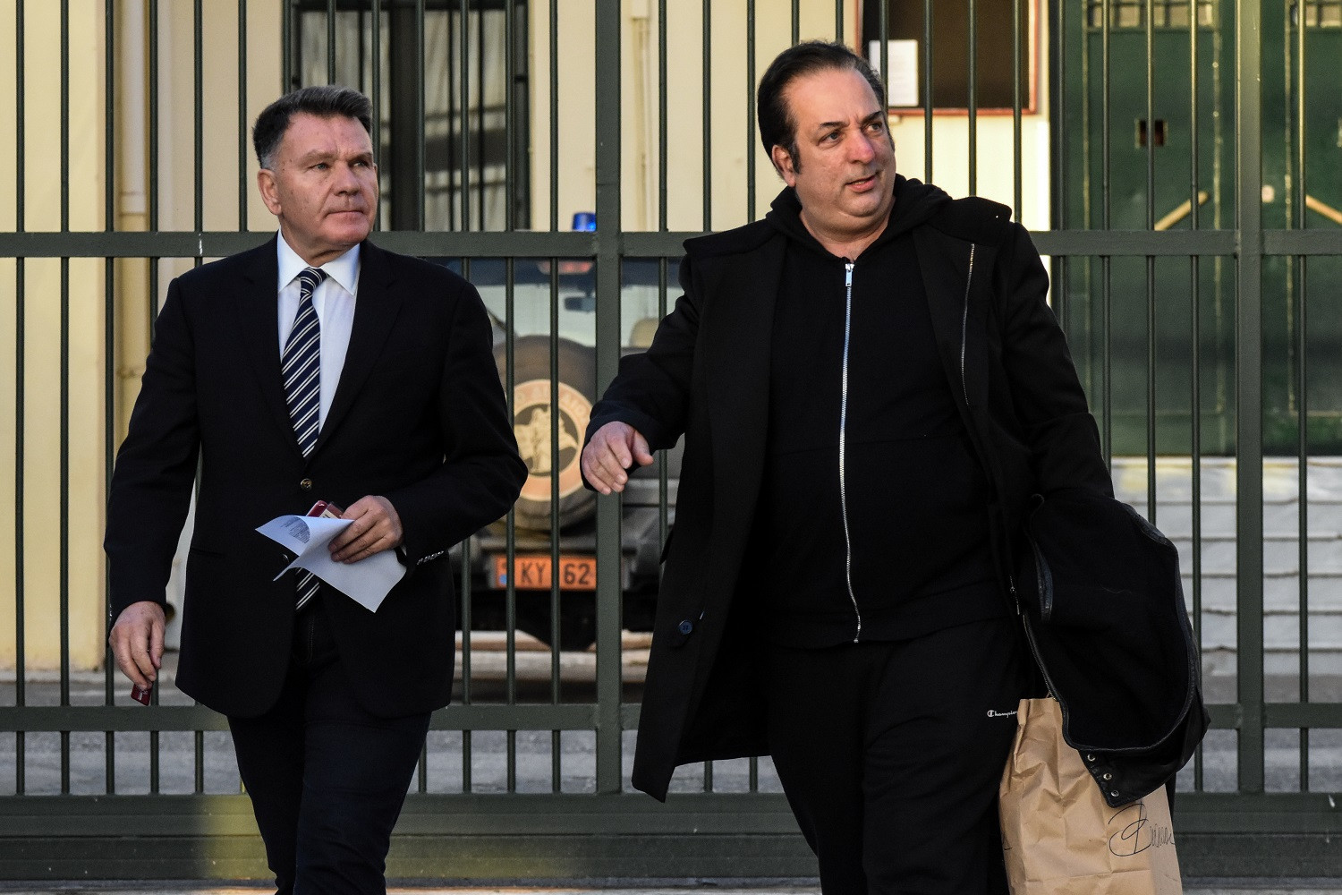 «Σας παρακαλώ. Είμαι 15 ημέρες χωρίς να έχω κάνει τίποτα παράνομο. Θέλω να πάω σπίτι μου θέλω να πάω στους ανθρώπους που με αγαπάνε, στα μαγαζιά μου που έχουν ιδιαίτερη μεταχείριση χωρίς καμία εκμετάλλευση θα σας περιμένουν, για οτιδήποτε άλλο με τους δικηγόρους μου. Νομίζω καταλαβαίνετε» δήλωσε ο γνωστός ενεχυροδανειστής ο οποίος μπήκε στο αυτοκίνητο του Αλέξη Κούγια και αναχώρησαν για Αθήνα.