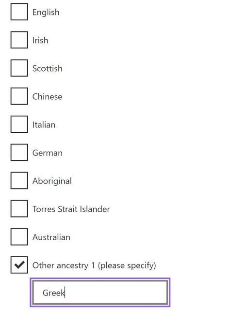 Οι ομογενείς θα πρέπει να καταγράψουν την ελληνική καταγωγή τους στο κουτάκι όπου αναφέρεται η λέξη «Άλλη» (other).