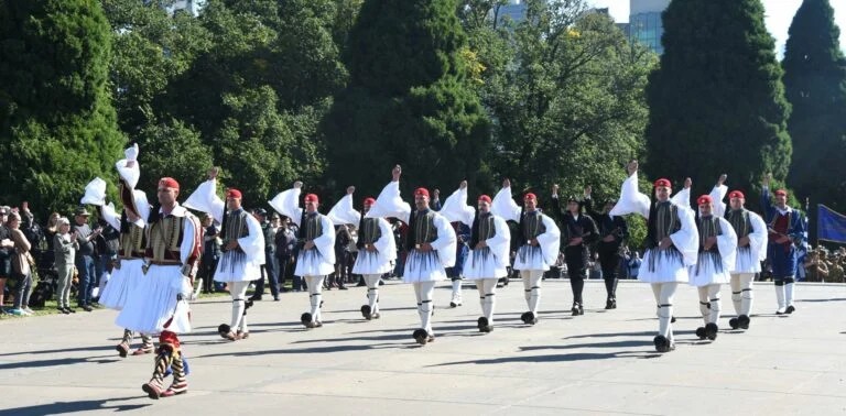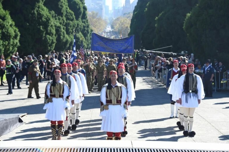 Για τους Έλληνες της Μελβούρνης η συναισθηματική φόρτιση ήταν ακόμα πιο έντονη εξαιτίας της παρουσίας των Ευζώνων από την Προεδρική Φρουρά.