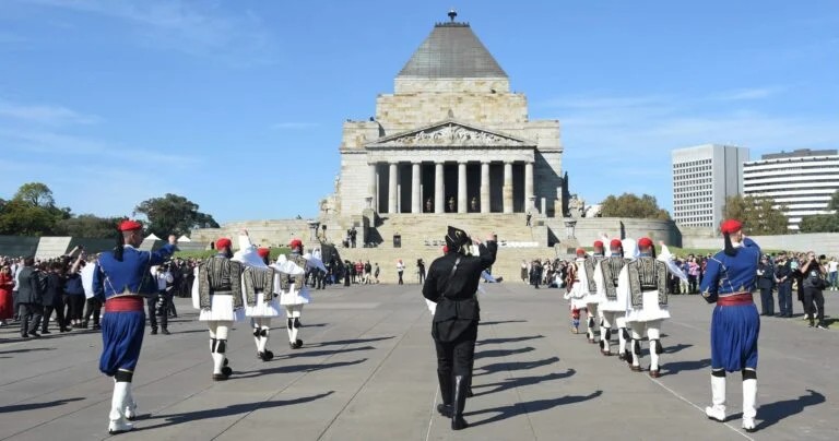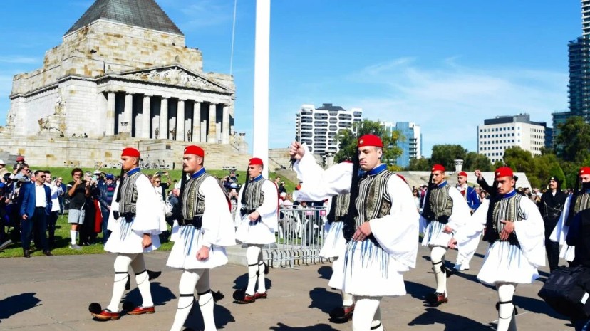 Αποθέωση γνώρισαν οι Εύζωνες που έλαβαν μέρος στην παρέλαση για το ANZAC DAY στο Shrine of Remembrance της Μελβούρνης