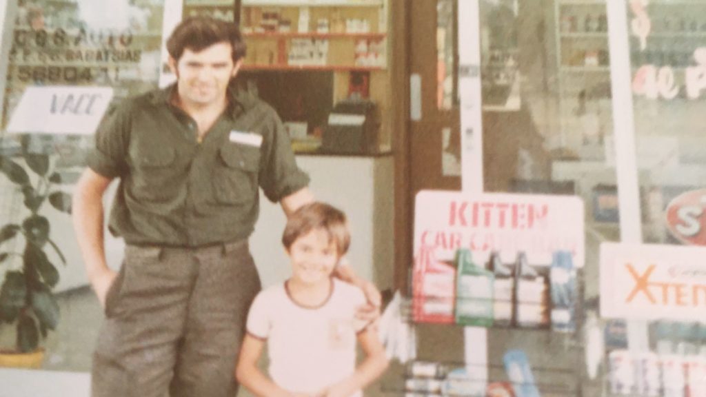 Πατέρας και γιος Μπαμπατσιάς κατά τη διάρκεια της έναρξης λειτουργίας του πρατηρίου βενζίνης της οικογενείας. Φώτο: Supplied