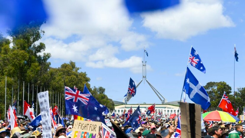 Σε όλα τα μήκη και πλάτη της γης ο κόσμος δείχνει ότι δεν αντέχει άλλο στην καταπίεση και στα μέτρα κατά του κορωνοϊού που επιβάλλουν οι κυβερνήσεις. Στο πλαίσιο αυτό, πραγματοποιήθηκε το Σάββατο μια μεγαλειώδης συγκέντρωση διαμαρτυρίας στην πρωτεύουσα της Αυστραλίας την Καμπέρα.