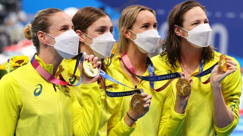 Το πρώτο παγκόσμιο ρεκόρ στα αγωνίσματα κολύμβησης των Ολυμπιακών Αγώνων του Τόκιο σημειώθηκε στα 4Χ100μ. ελεύθερο γυναικών. Η Αυστραλία επιβεβαίωσε τα προγνωστικά, κατέκτησε για τρίτη σερί διοργάνωση το χρυσό μετάλλιο και με χρόνο 3:29.69 κατέρριψε το 3:30.05 που είχε η ίδια από τις 5/4/2018. Τη δεύτερη θέση πήρε ο Καναδάς με 3:32.78 και την τρίτη οι ΗΠΑ με 3:32.81.