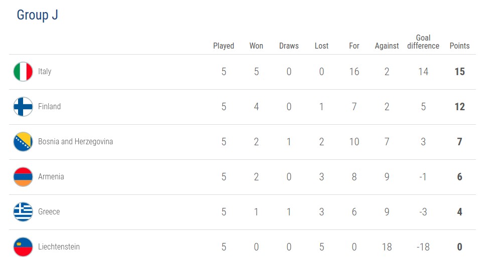 Πλέον, η Ελλάδα και με το χάος που άφησε η εποχή Αναστασιάδη, παρέμεινε στους 4 βαθμούς στον όμιλο και οι ελπίδες της για τη 2η θέση είναι μόνο μαθηματικές, αφού η Φινλανδία έχει… χαθεί στους 12 και απομένουν ακόμα 5 αγωνιστικές, μέσα στις οποίες η Εθνική αντιμετωπίζει εκτός την Ιταλία.