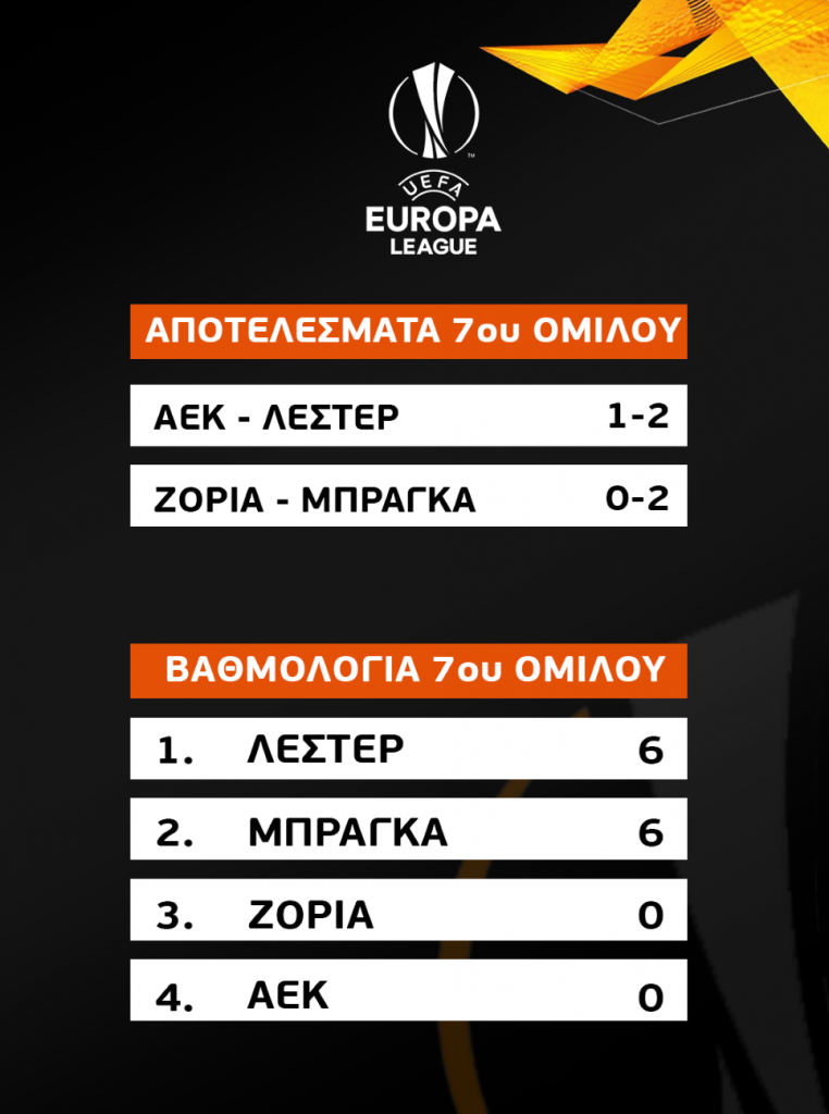 Ο Μπρένταν Ρότζερς διαχειρίστηκε άψογα το ματς με τις αλλαγές του, οι Άγγλοι έβγαλαν ψυχραιμία και κοντρόλαραν τον ρυθμό, κρατώντας μακριά από την περιοχή του Σμάιχελ τους «κιτρινόμαυρους». Ο Μάνταλος προσπαθούσε μόνος του, ο Τάνκοβιτς πάλευε κι αυτός, αλλά η ΑΕΚ δεν είχε αυτό το κάτι που έπρεπε για να απειλήσει περισσότερο. Η Λέστερ… έσβησε το ματς, έφτασε στη δεύτερή της νίκη σε ισάριθμα ματς στο Europa League και δείχνει πως θα περάσει χέρι-χέρι με την Μπράγκα στην επόμενη φάση. Η Ένωση από την άλλη πρέπει να διεκδικήσει τουλάχιστον 4 βαθμούς, ίσως και έξι στα διπλά ματς με την Ζόρια μπας και αναπτερώσει τις ελπίδες της για πρόκριση.
