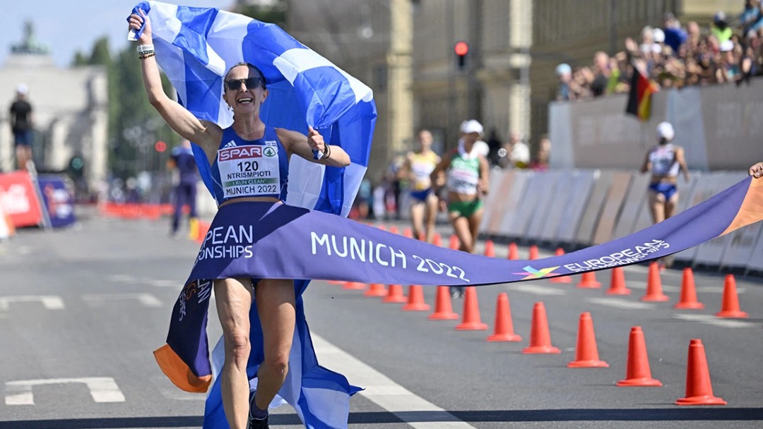 Έγραψε ιστορία στο Μόναχο η Αντιγόνη Ντρισμπιώτη κατακτώντας το χρυσό μετάλλιο στα 35χλμ βάδην, στο Ευρωπαϊκό πρωτάθλημα που γίνεται στη Γερμανία.