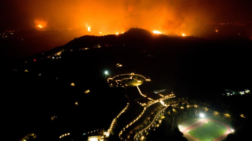 Οι πυροσβέστες καταβάλλουν υπεράνθρωπη προσπάθεια να ανακοπεί το μέτωπο, προκειμένου να μην περάσει στον Κρόνιο Λόφο.