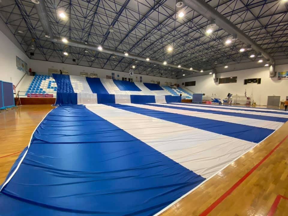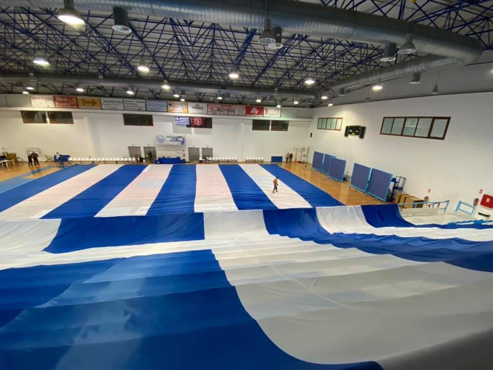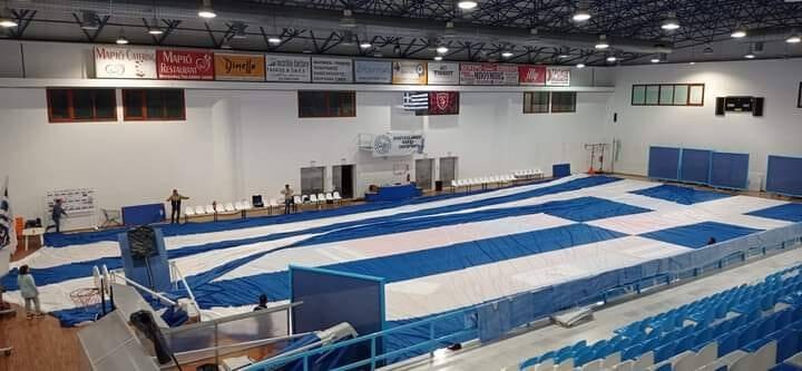 Η πρόβα έγινε στο κλειστό του ΔΑΠΠΟΣ, το οποίο όπως διαπιστώνετε από τις εικόνες που αλιεύσαμε από τα προφίλ των: Michael Pelekis και Δημητρης Αντωνο στο facebook, φαίνεται μικρό για να χωρέσει ολόκληρη την σημαία.