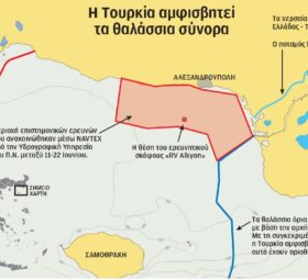 Με σαφή και ξεκάθαρο τρόπο η Αγκυρα αμφισβητεί και τα γενικώς παραδεδεγμένα περί χρήσης της μέσης γραμμής, ακόμη και στις εκβολές ποταμών, για την οριοθέτηση θαλασσίων συνόρων. Με NAVTEX του σταθμού της Σμύρνης (0536/24), η Αγκυρα καταγγέλλει τις επιστημονικές ... READ MORE »