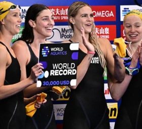 Ακόμη ένα παγκόσμιο ρεκόρ καταρρίφθηκε στην πρεμιέρα των αγωνισμάτων κολύμβησης, στο Παγκόσμιο Πρωτάθλημα υγρού στίβου της Φουκουόκα. Η γυναικεία ομάδα της Αυστραλίας μετέτρεψε σε… περίπατο τον τελικό των 4Χ100μ. ελεύθερο, με τις Μόλι Ο΄Κάλαχαν, Σέινα Τζακ, Μεγκ Χάρις και Εμα ... READ MORE »