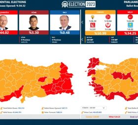 Ο Ρετζέπ Ταγίπ Ερντογάν προηγείται με ποσοστό 49,94% με καταμετρημένο το 89,24% των ψήφων, στον σημερινό Α΄γύρο των εκλογών για την εκλογή προέδρου στην Τουρκία. Με τα δεδομένα που διαμορφώνονται στην Τουρκία έξι ώρες αφού έκλεισαν οι κάλπες, ο ... READ MORE »
