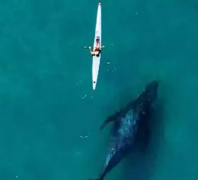 Τη στιγμή που μια πελώρια μεγάπτερη φάλαινα κολυμπά σε «απόσταση αναπνοής» από ένα καγιάκ στα ανοιχτά της παραλίας Μπόντι στην Αυστραλία κατέγραψε ένας χειριστής drone, με το βίντεο να συγκεντρώνει εκατομμύρια views στα μέσα κοινωνικής δικτύωσης και τα MME ... READ MORE »