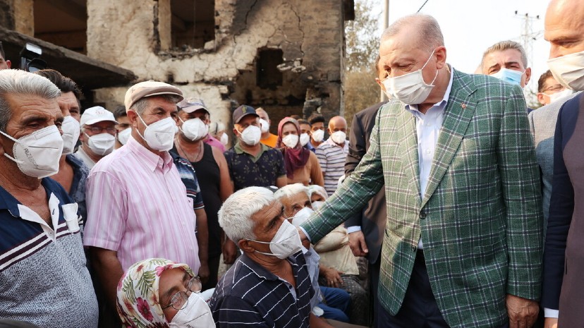 Οι εικόνες με τον Τούρκο πρόεδρο να μοιράζει τσάι στους πυρόπληκτους πολίτες, ενώ περνούσε με λεωφορείο από τις περιοχές που βρέθηκαν στο επίκεντρο των καταστροφών έχουν προκαλέσει αίσθηση.