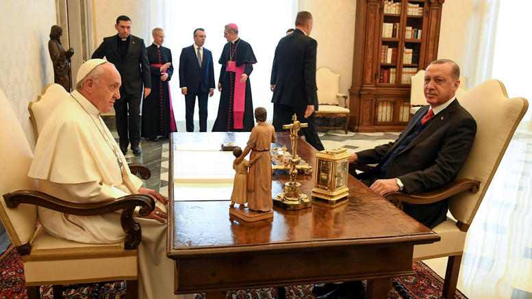 Ο Ταγίπ Ερντογάν είναι ο πρώτος τούρκος πρόεδρος που επισκέπτεται το Βατικανό μετά από περίπου έξι δεκαετίες. Μεταξύ των θεμάτων που αναμένεται να συζητήσουν ο Πάπας Φραγκίσκος και Ρετζέπ Ταγίπ Ερντογάν θα είναι το καθεστώς της Ιερουσαλήμ και η αντιμετώπιση της τρομοκρατίας.