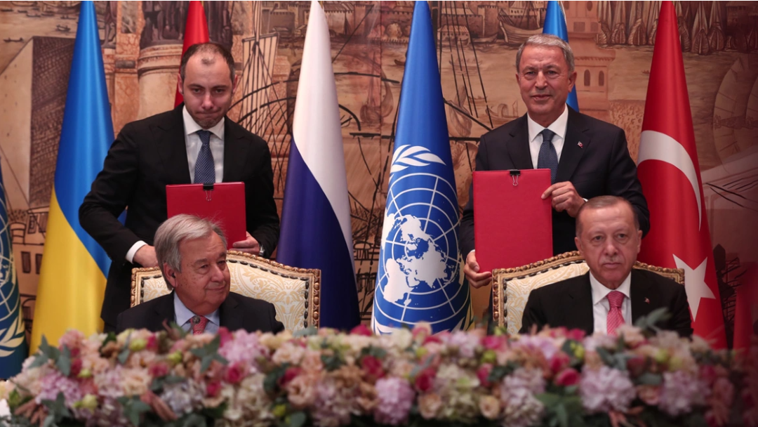 Η Ουκρανία και η Ρωσία υπέγραψαν δύο χωριστές συμφωνίες με την Τουρκία και τα Ηνωμένα Έθνη για την εξαγωγή σιτηρών και γεωργικών προϊόντων μέσω της Μαύρης Θάλασσας, καθώς το Κίεβο αρνήθηκε να υπογράψει απευθείας το κείμενο με τη Μόσχα, η οποία υπέγραψε την ίδια συμφωνία με την Άγκυρα και τον γενικό γραμματέα του ΟΗΕ.