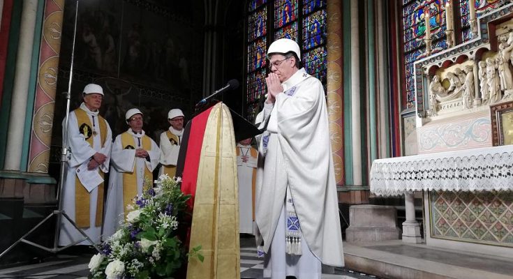 «Με μεγάλη συγκίνηση βρισκόμαστε εδώ για να γιορτάσουμε τον καθαγιασμό του καθεδρικού ναού» είπε ο αρχιεπίσκοπος του Παρισιού Μισέλ Οπετί, που χοροστάτησε στη λειτουργία.
