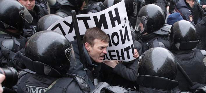 Ο Ρώσος αντιπολιτευόμενος ηγέτης Αλεξέι Ναβάλνι συνελήφθη σήμερα στη Μόσχα από την αστυνομία, ενώ χιλιάδες άνθρωποι στη Ρωσία διαδήλωσαν, έπειτα από έκκλησή του, για να καταγγείλουν την «απάτη» των προεδρικών εκλογών της 18ης Μαρτίου.