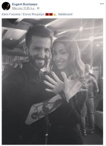 Συγκεκριμένα, η τραγουδίστρια πόζαρε στο πλευρό του εκπροσώπου της Αλβανίας Eugent Bushpepa, με τους δυο τους να σχηματίζουν με τα χέρια τους το σύμβολο της γειτονικής χώρας. Ο Αλβανός τραγουδιστής χρησιμοποίησε το δεξί του χέρι και η Ελένη Φουρέιρα το αριστερό, σχηματίζοντας έτσι από κοινού, τον αλβανικό αετό.