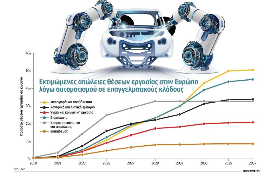 Ωστόσο, είναι δύσκολο να προβλέψει κανείς πόσους θα εκτοπίσει άμεσα η αυτοματοποίηση. Οι εκτιμήσεις ποικίλλουν. Στην Ελλάδα από 2% έως 23%, στη Βολιβία από 2% έως 41%, στη Λιθουανία από 5% έως 56%, στην Ιαπωνία από 6% έως 55%, που δείχνει πόσο ρευστό είναι το τοπίο και πόσο αβέβαιος ο μελλοντικός κόσμος της εργασίας.