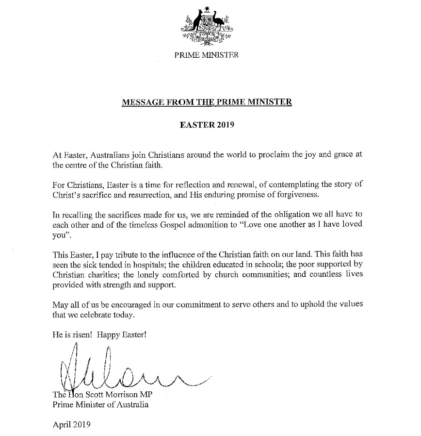 Το ευχετήριο μήνυμα του PM Scott Morrison για το Πάσχα προς όλους τους Χριστιανούς
