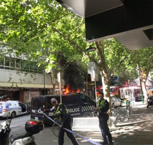 Από την επίθεση με μαχαίρι εναντίον αστυνομικών και περαστικών στην Μπερκ Στριτ στο κέντρο της Μελβούρνης ένας άνθρωπος έχασε τη ζωή του και δύο τραυματίστηκαν.