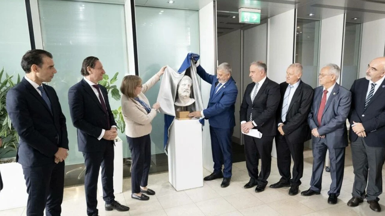 Στο πέρας της σημαντικής συνάντησης, ο κ. Γιώργος Πατούλης έκανε τα αποκαλυπτήρια του αντιγράφου της προτομής του Ιπποκράτη, σύμβολο της συμφωνίας.